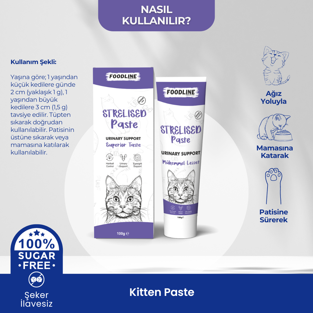Yaşına göre; 1 yaşından küçük kedilere günde 2 cm (yaklaşık 1 g), 1 yaşından büyük kedilere 3 cm (1,5 g) tavsiye edilir. Tüpten sıkarak doğrudan kullanılabilir. Patisinin üstüne sıkarak veya mamasına katılarak kullanılabilir.